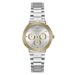 The most essential elements, refined and expressed in elegant details. The result is this sleek, yet substantial timepiece with three sub-dials (indicating day of the week, month, and second time zone) subtly enhanced with Furla Arch logo pattern, and a 36mm round, polished silver tone case finished with finely milled concentric circles carved into the gold plated bezel. Furla logo is proudly engraved on the bracelet attachment, but the style is all yours.