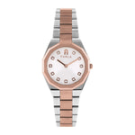 Luxurious timekeeping defines this new Furla silhouette with an elegant bracelet setting and silver sunray face subtly printed with the iconic Furla Arch logo in a discreet all-over pattern. Bright white crystals set in rose gold-toned stations mark the hours, mirrored by the 12-sided bezel in brushed rose gold-tone steel.
