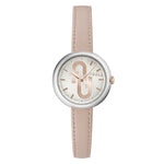 Perfectly rounded, this logo-centric ladies timepiece in silver tone offers sleek sophistication with a swirling silver guilloché dial with the entwined Furla Arch logo and indices picked out in nude colour, on matching slim nude colour leather strap.