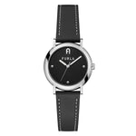 FURLA EASY SHAPE is an easy to wear watch for an effortless elegance, with a silver rounded petite case, black dial and the arch logo at 12. All set with comfortable black leather strap to embrace a sober yet elegant look